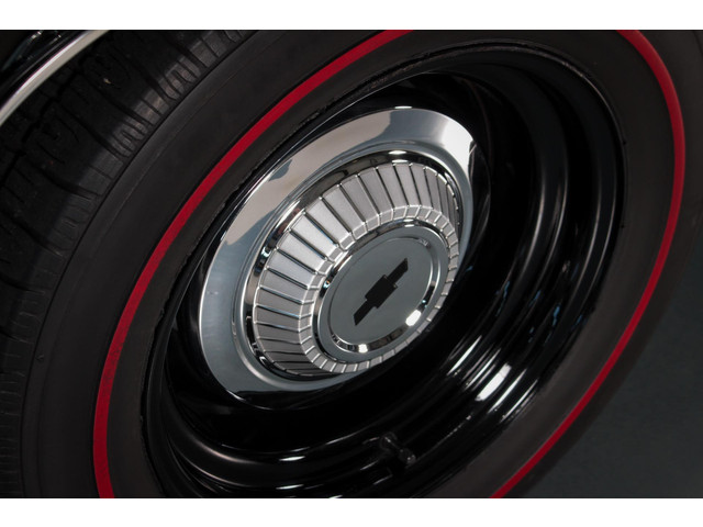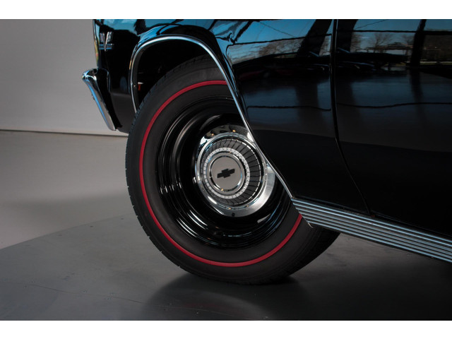 The body is laser-straight and finished in a deep, high-gloss black that looks miles deep under the lights. Accented with classic SS badging, chrome trim, and brand new Redline radial tires mounted on steel wheels with chrome dogdish hubcaps, this Chevelle perfectly captures the no-nonsense muscle car aesthetic.