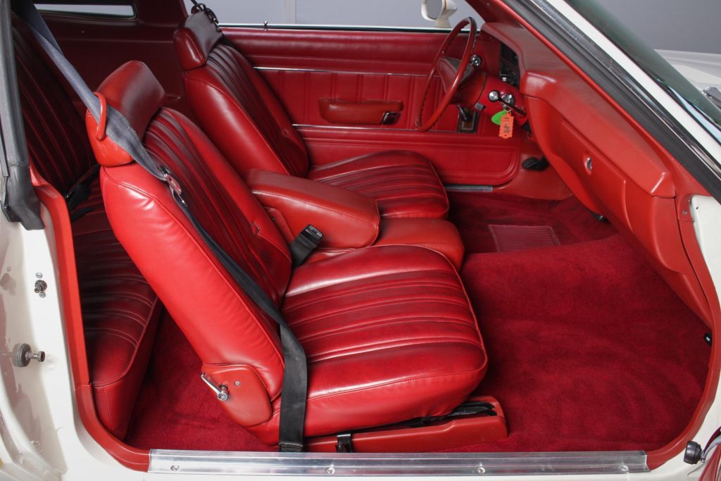 • Refreshed interior including red vinyl bucket seats, carpet, and NOS materials